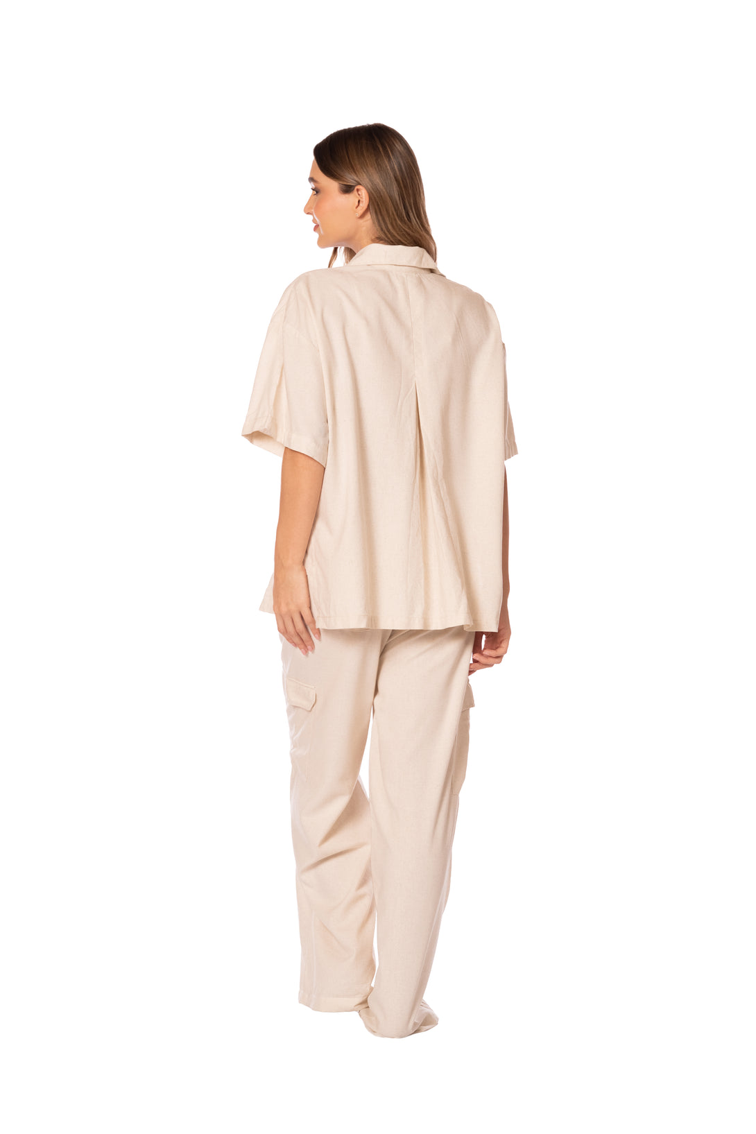 Camisa color marfil bordada con tejido suave al tacto. Corte holgado con cierre de botones frontal. Sus delicadas costuras y su diseño atemporal la convierten en una prenda básica versátil con bolsillo abierto.