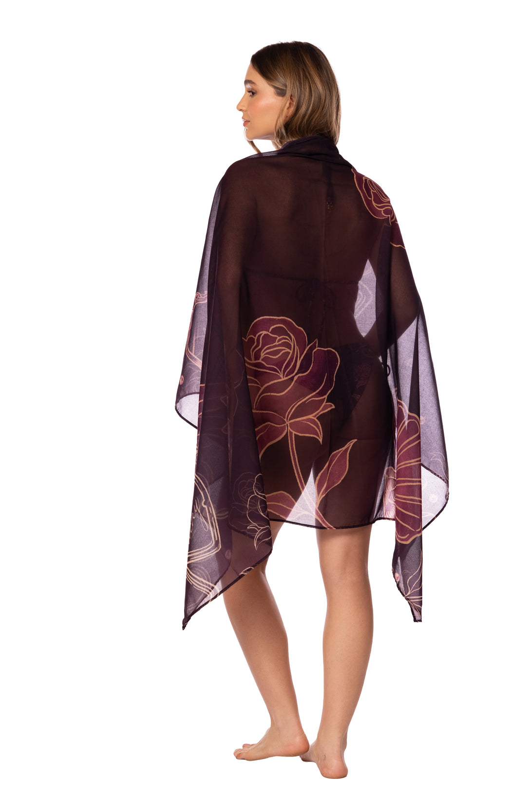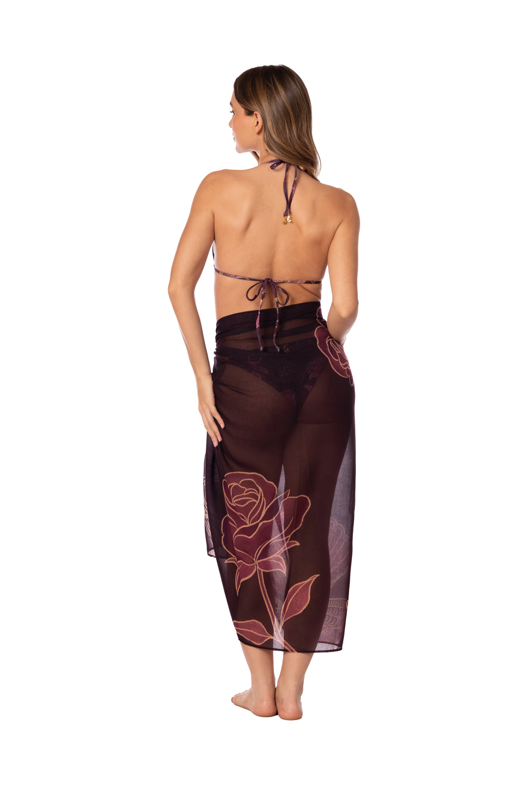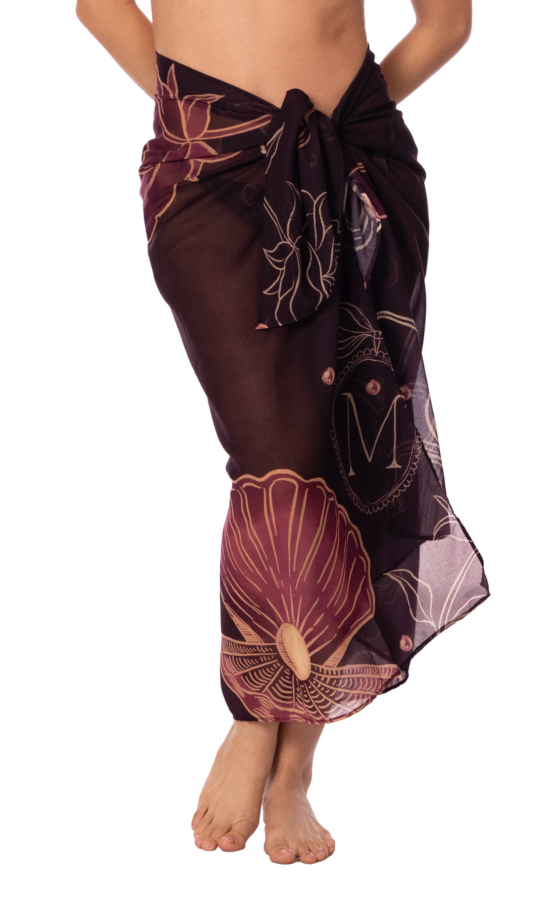 Pareo con lazos en la cintura y estampado localizado. Una pieza versátil que envuelve tu cuerpo con ligereza, perfecta para llevar sobre tu bikini o transformar en múltiples estilos según tu intención del día.